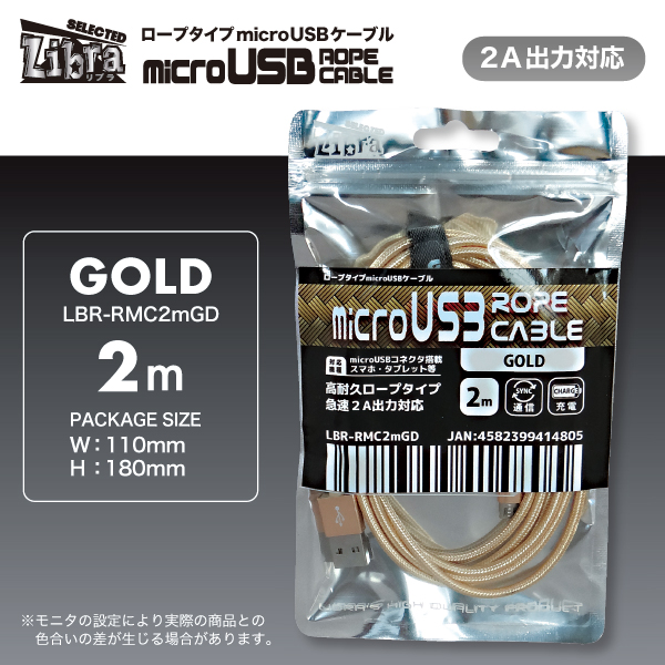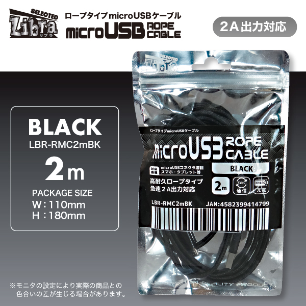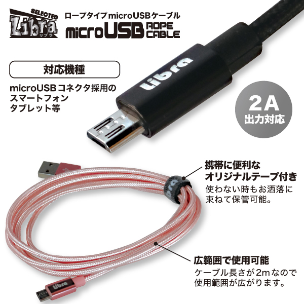 | 品名 | 急速2A出力対応ロープタイプmicroUSBケーブル2m |