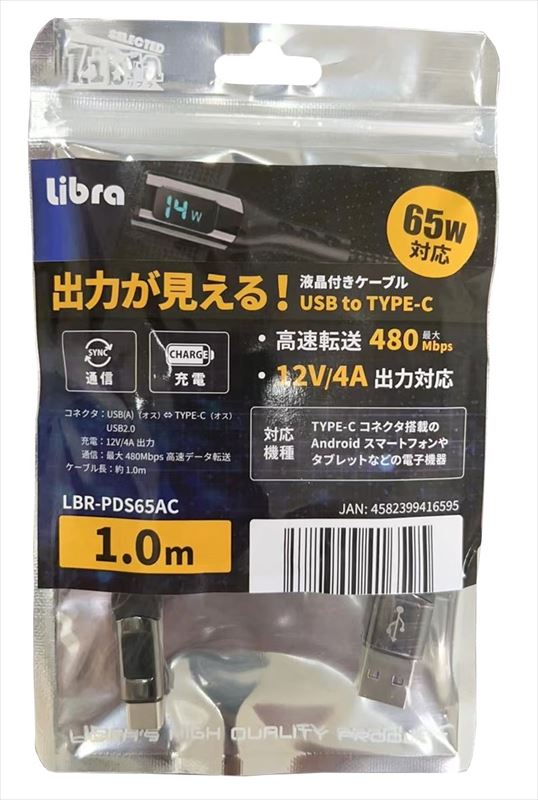 | 品名 | 出力が見える!液晶付きケーブル TYPE-C to TYPE-C 100W対応 出力が見える!液晶付きケーブル 8pin to TYPE-C 20W対応 出力が見える!液晶付きケーブル USB to TYPE-C 65W対応 |