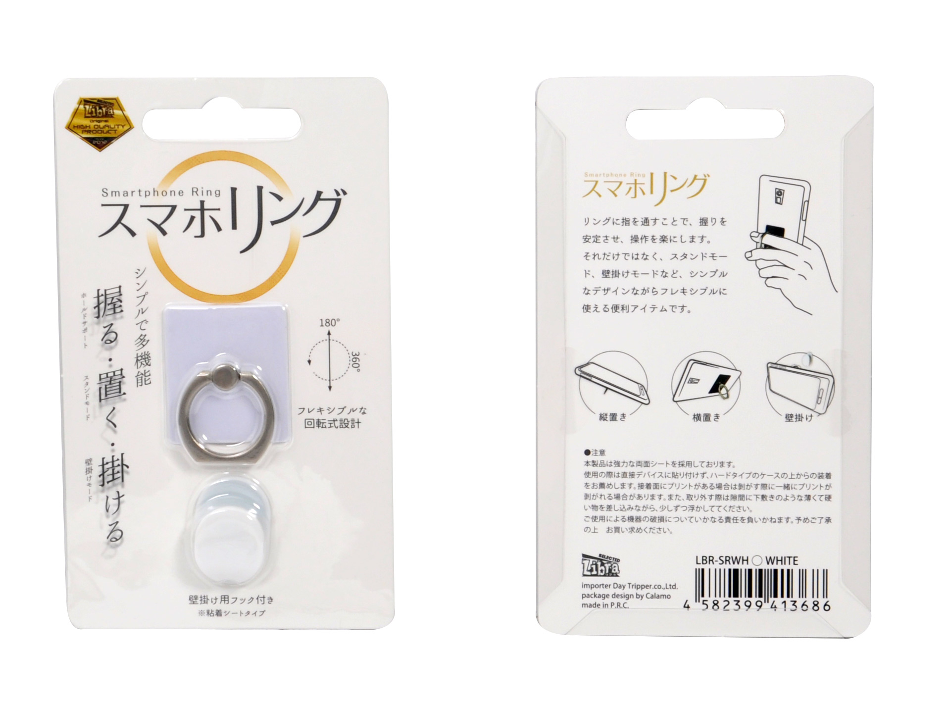 | 色・型番・JAN | LBR-SRWH スマホリング(白) 4582399413686 LBR-SRBK スマホリング(黒) 4582399413693 LBR-SRGD スマホリング(金) 4582399413709 LBR-SRPK スマホリング(ピンク) 4582399413716 |
