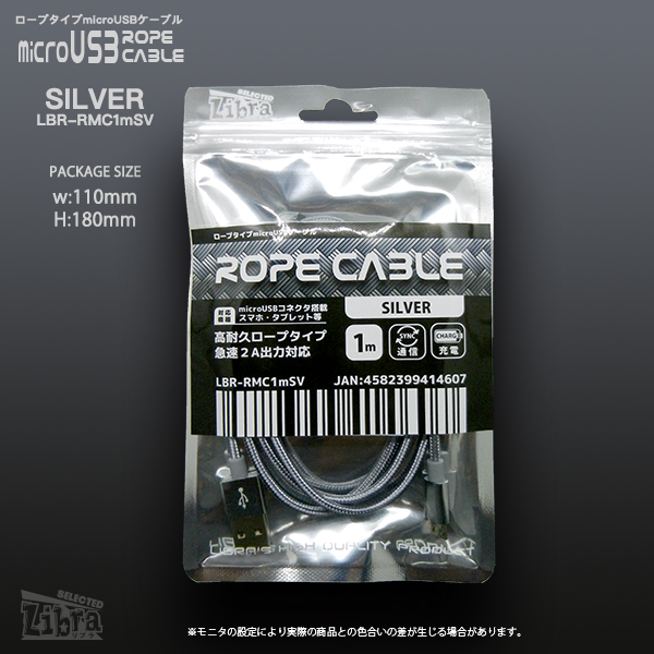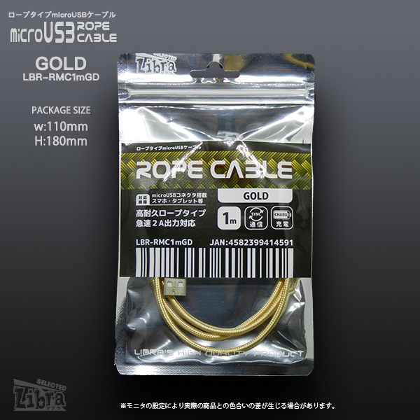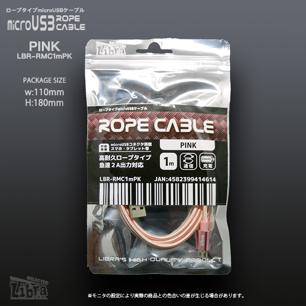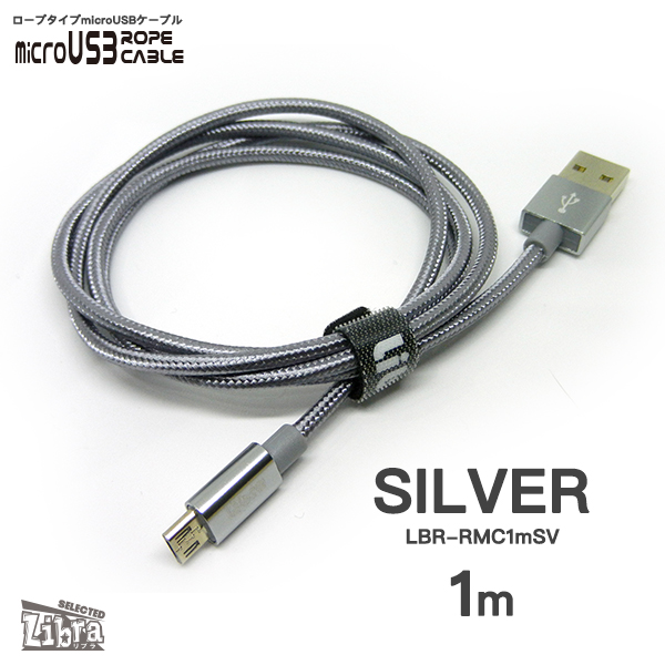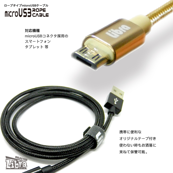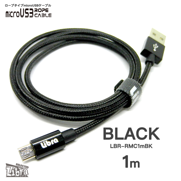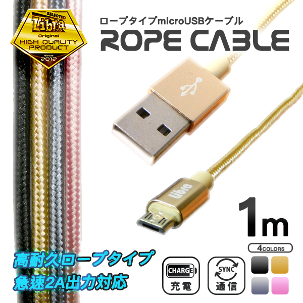 高耐久ロープタイプ、2A急速充電対応のmicroUSBケーブル1mです。