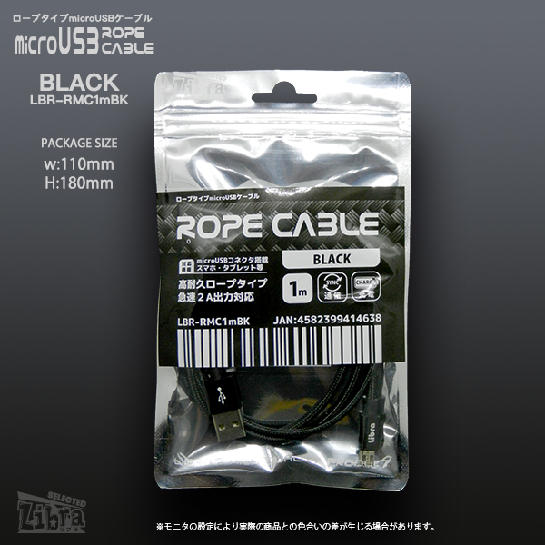 | 品名 | 急速2A出力対応ロープタイプmicroUSBケーブル1m |