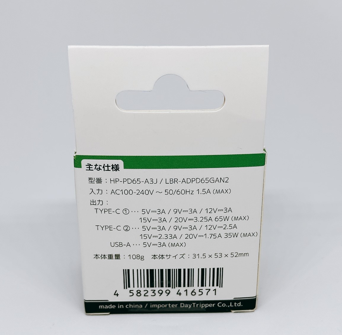 | 品名 | Libra 65W 3ポートガリウムPD充電器 |