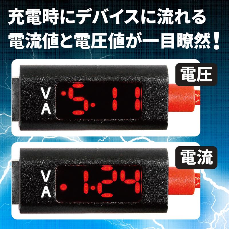 ケーブルに流れる電圧/電流が測定できるケーブルです。