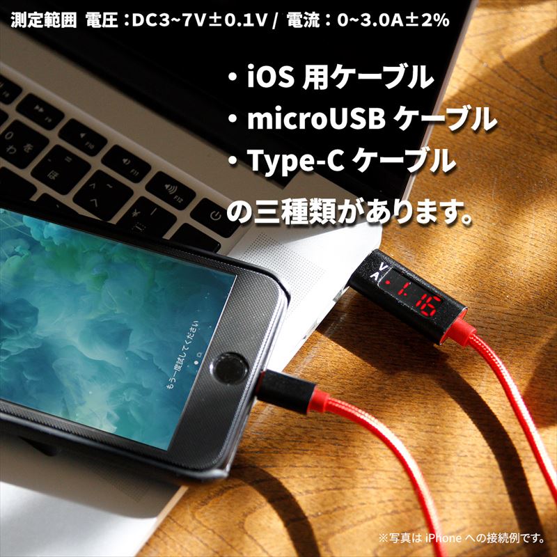 【品名】Libra電圧・電流チェッカーケーブル for iOS 【品名】Libra電圧・電流チェッカーケーブル for TYPE-C 【品名】Libra電圧・電流チェッカーケーブル for microUSB |